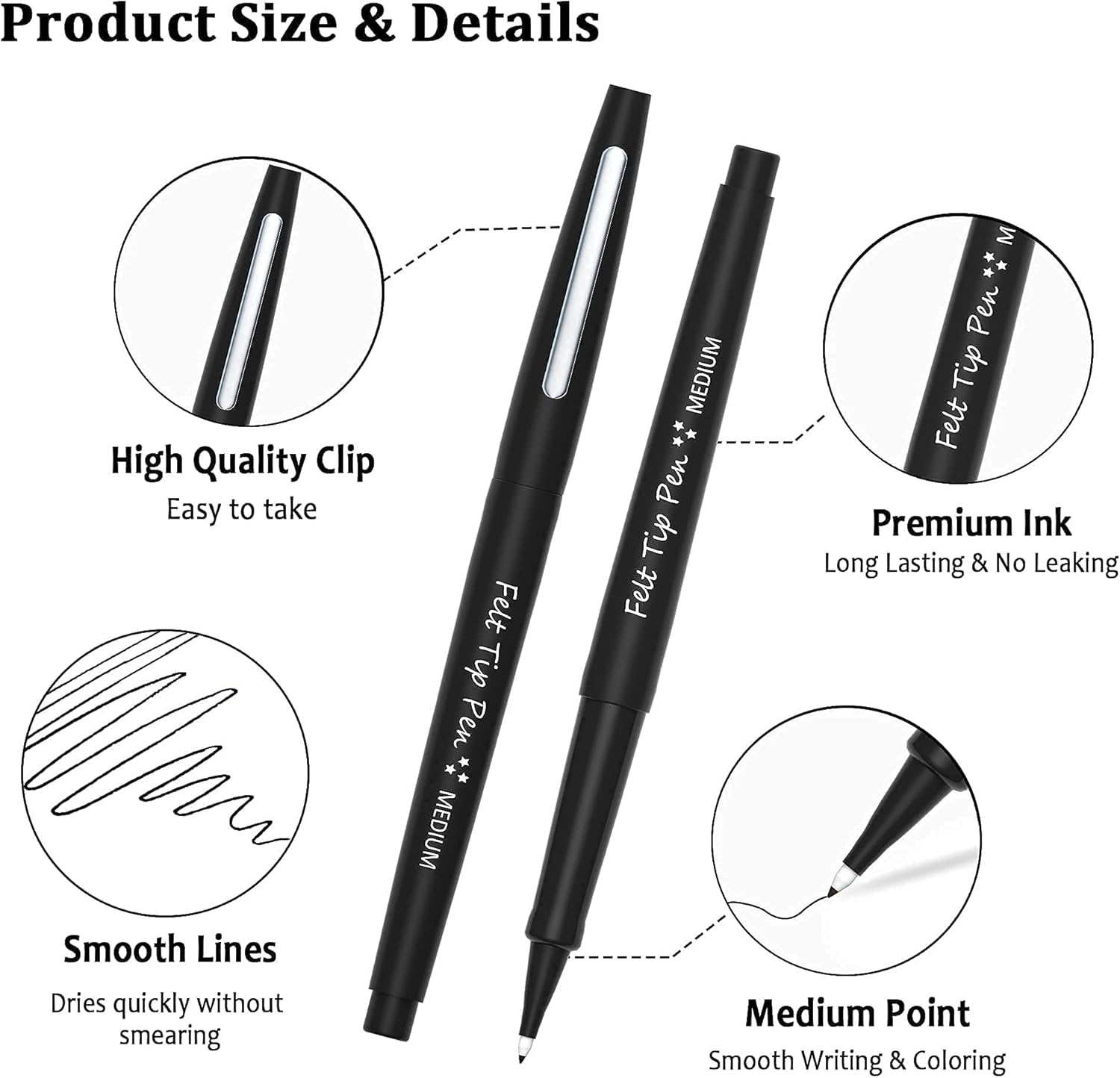 Lelix Felt Tip Pens, 15 Black & 15Blue & 15 Red Medium Point Felt Pens, Felt Pens For Journaling, Writing, Note Taking, Planner Coloring, Perfect for Art Office and School Supplies